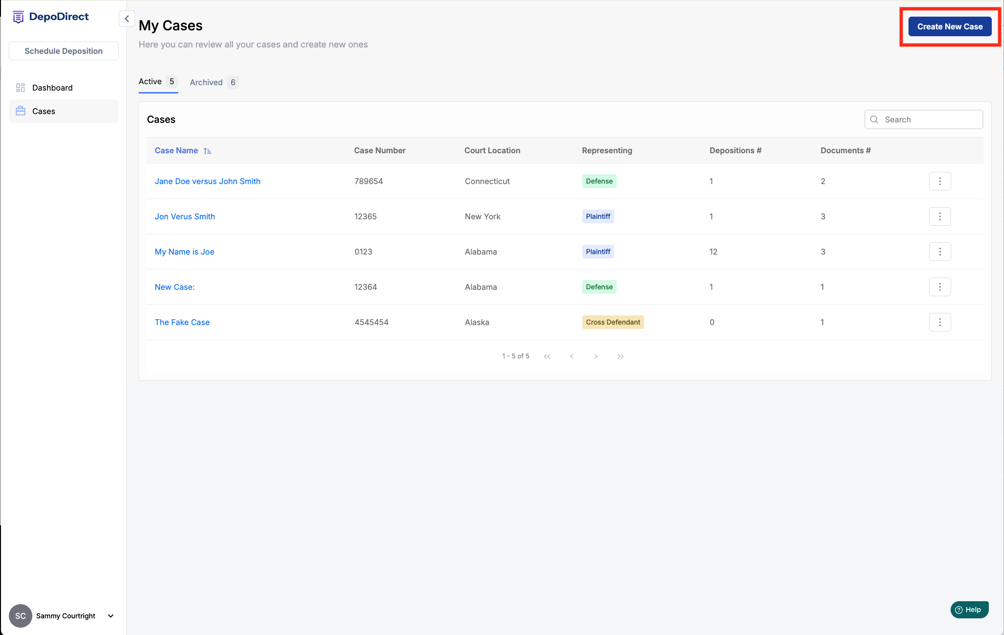 The DepoDirect platform provides Cases as a way to organize information in your account and have a one-to-one mapping with your actual cases. Cases are meant to organize all of your depositions and Exhibits. Cases also give you a level of access control through teammates.